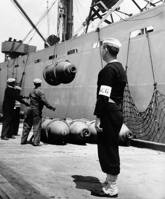 Members of the Coast Guard’s Explosives Loading Detail received special training in the handling, loading, and proper stowage of explosives and ordnance. (USCG Photo)